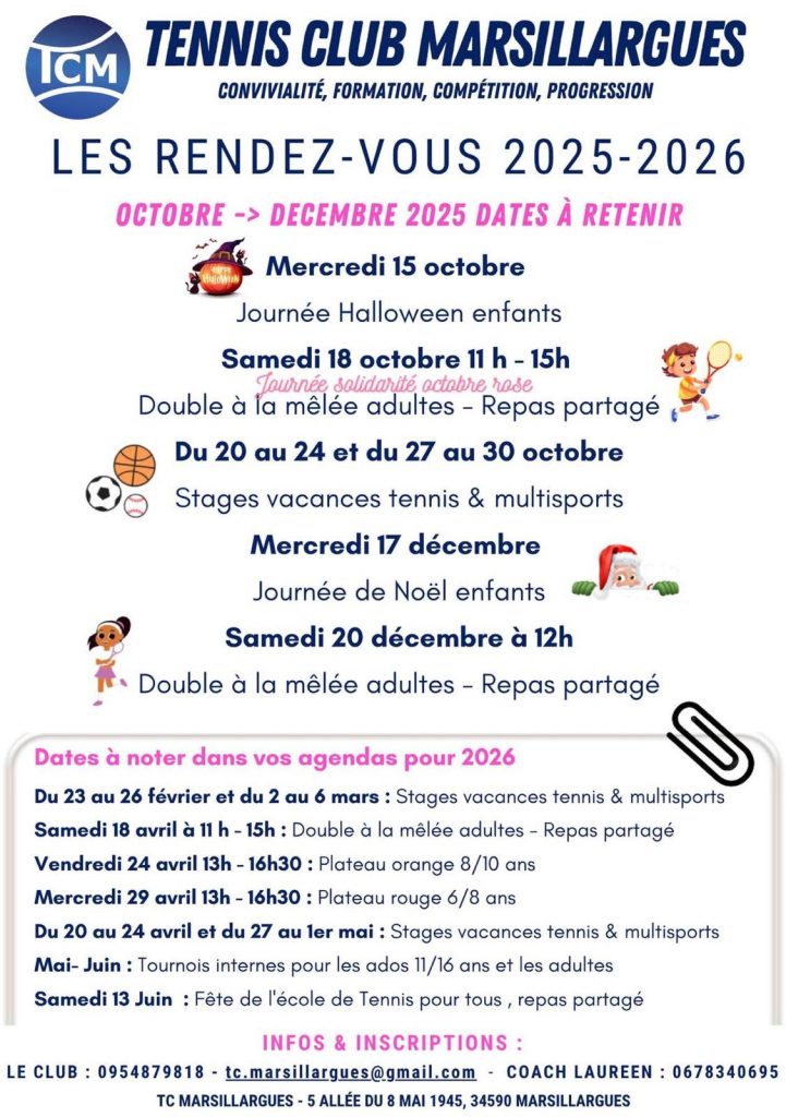 À NOTER : Repas de fin de stage prévu le vendredi midi - inscription et réglement en début de stage au club.